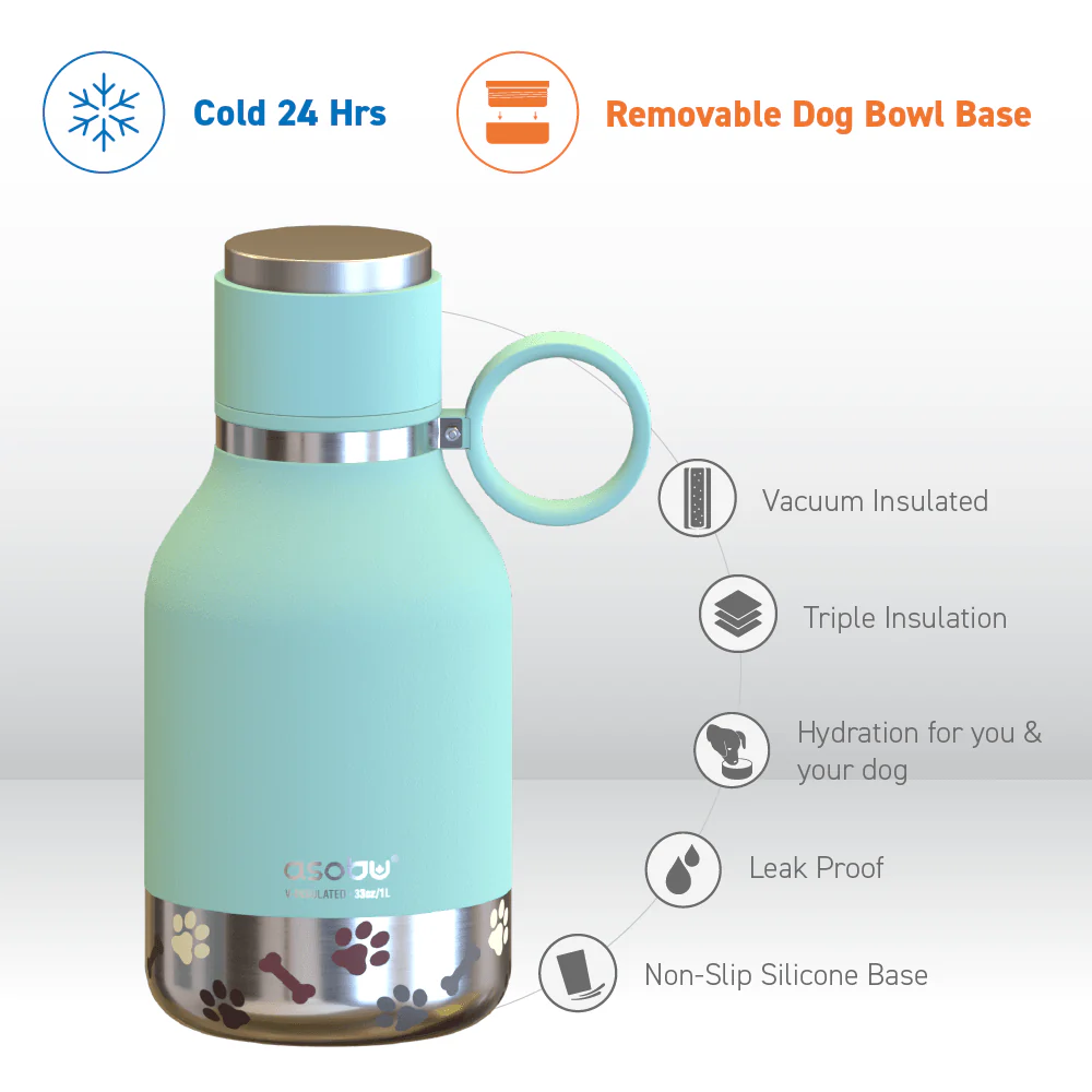 Sharing is caring — and our innovative Teal Dog Bowl Bottle makes it easier than ever to share your water with your pup without cross contamination. This vacuum insulated stainless steel bottle keeps your water perfectly chilled for hours, and the detachable insulated dog bowl makes it a breeze to share with your best friend. The leak-proof lid, durable construction, and easy-to-carry handle are made for adventure.